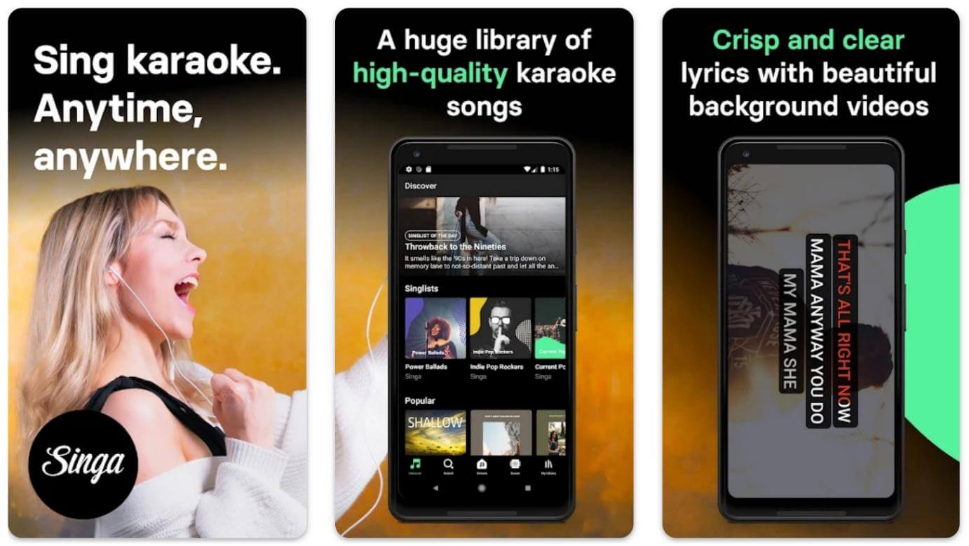 Singa – Karaoke & Lyrics es otro de nuestra lista para crear canciones de karaoke intuitivas. Esta aplicación cuenta con una gran biblioteca de canciones en diferentes géneros e idiomas. La función de corrección de tono es sorprendente para mejorar el eco, la voz o la letra. La aplicación funciona en teléfonos inteligentes, tabletas o PC para obtener acceso siempre en cualquier momento y lugar . Tiene canciones para cada tema y te ayuda a cantar canciones desconocidas.