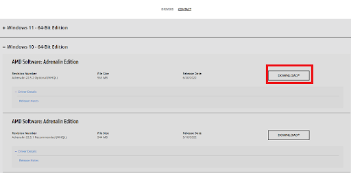Étape 3 : Choisissez le fichier de pilote compatible en fonction de la version du système d'exploitation Windows que vous utilisez actuellement, puis cliquez sur l'option Télécharger à côté du fichier de pilote.