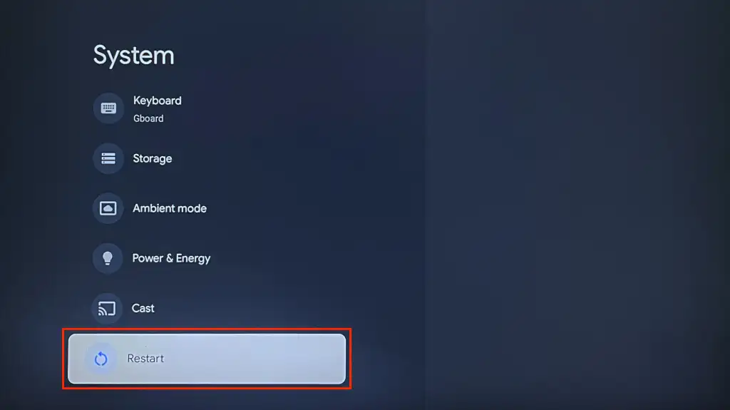 - Faites défiler la page système, sélectionnez Redémarrer et choisissez à nouveau Redémarrer sur l'écran de confirmation.