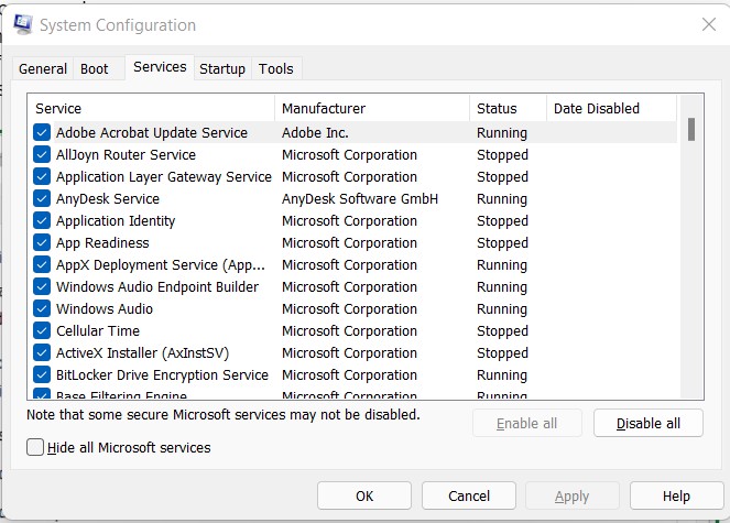 - Ensuite, cochez l'option intitulée Masquer tous les services Microsoft.