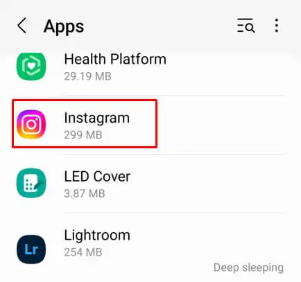 - Temukan Instagram dan ketuk.