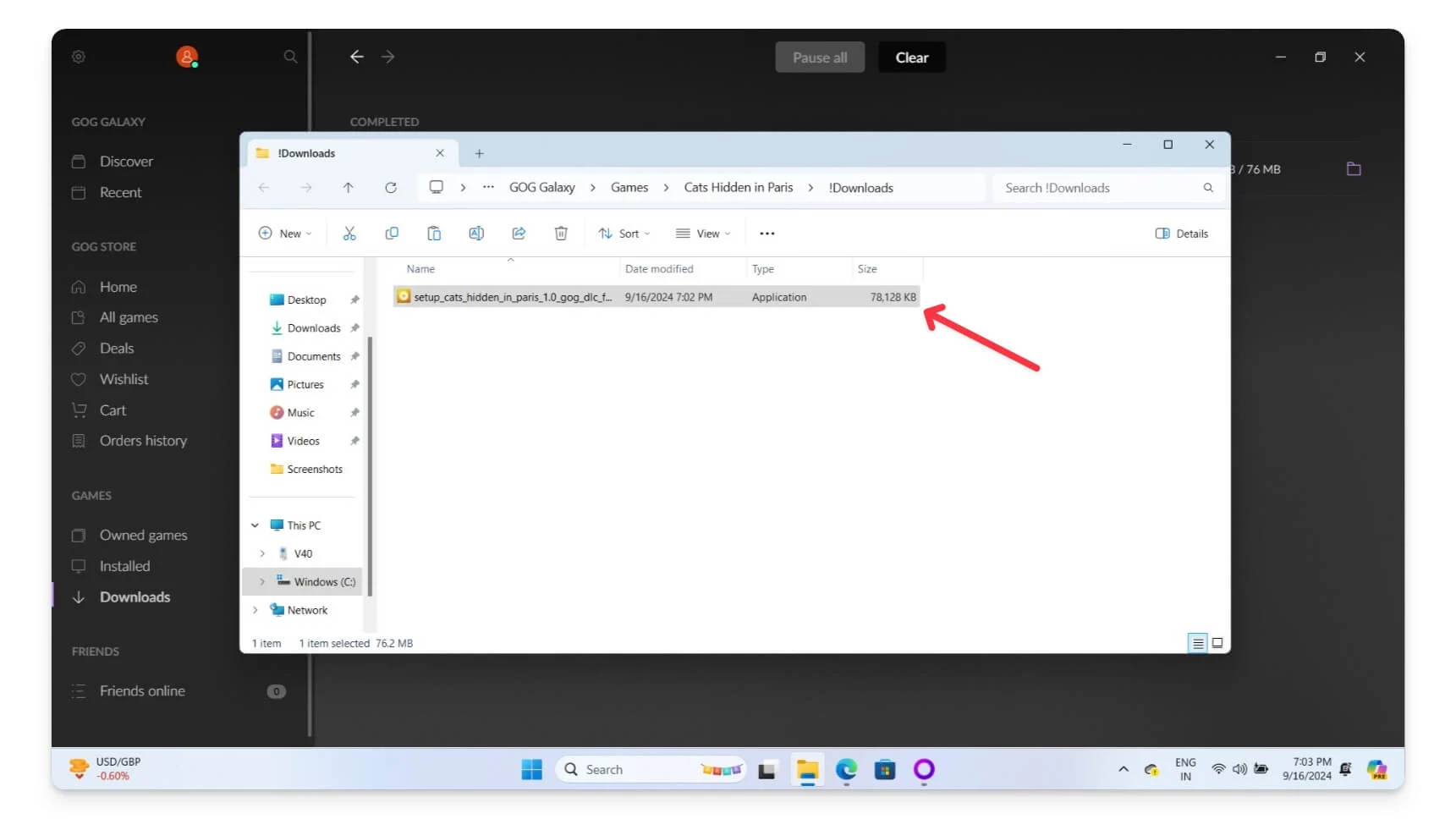 - このリンクからGOG Galaxy アプリをダウンロードし、PC にインストールします。