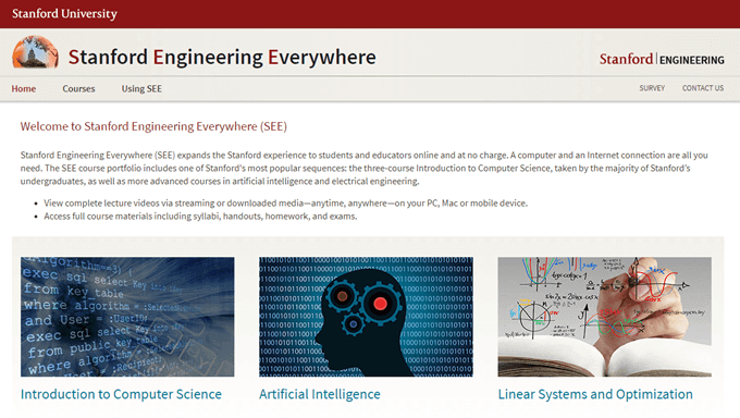Studia na Uniwersytecie Stanforda nie są bezpłatne, ale ich kursy Stanford Engineering Everywhere (SEE) są takie. Opublikowany na licencji Creative Commons materiał SEE jest bezpłatny i otwarty do ponownego wykorzystania. Sprawdź licencję CC, aby uzyskać szczegółowe informacje.