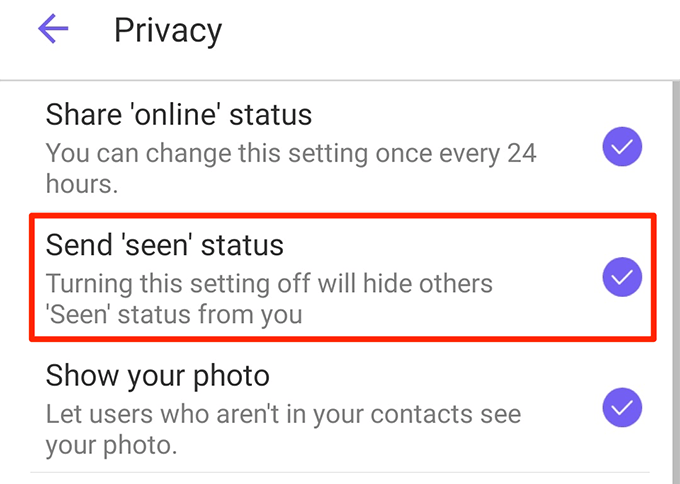 เมื่อพูดถึงความเป็นส่วนตัว Viber มีคุณสมบัติมากมายที่คุณสามารถเปิดและปิดการใช้งานสำหรับบัญชีของคุณได้ มีตัวเลือกใบตอบรับการอ่านเช่นกัน แต่ไม่ได้เรียกอย่างนั้น เรียกว่า "เห็นสถานะ" และคุณสามารถเปิดและปิดได้ตามต้องการ