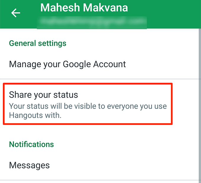 - เลือกตัวเลือกที่ระบุว่า แชร์สถานะของคุณ เพื่อดูการตั้งค่าการแชร์สถานะของคุณ