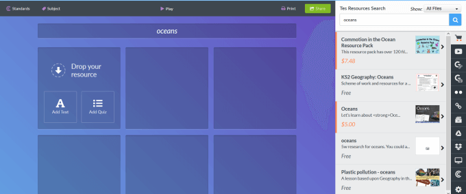 Tes Teach, YouTube, Google ve diğer Tes öğretmenleri dahil olmak üzere bir kaynak listesinden videolar, resimler ve diğer ilgili içeriği bulacaktır.