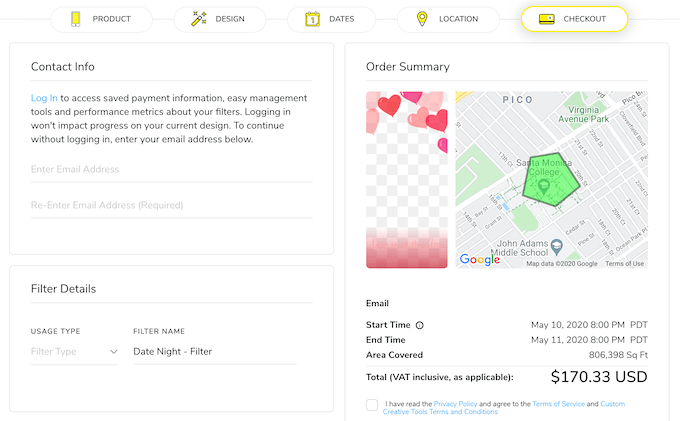 Aynı algoritmayı takip edin, kendi tasarımınızı yaratın, tarihleri ve alanı belirleyin, ardından Snapchat filtrenizi ödeyin ve onay için gönderin.