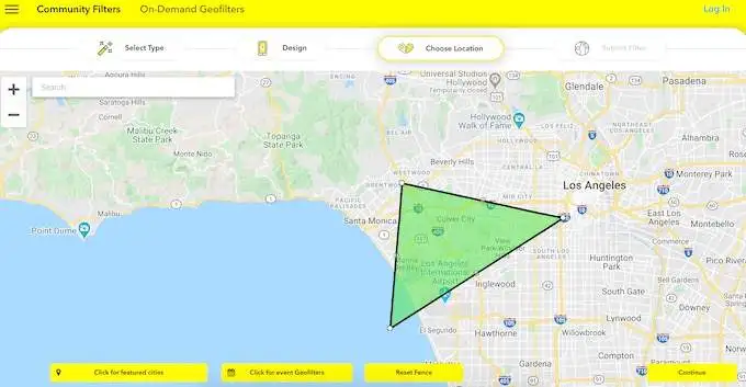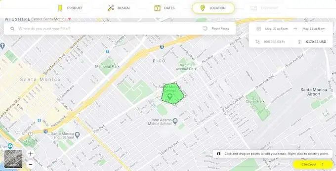 - Konum altında, Coğrafi Filtrenizin alanını seçmek için bir çit çizin. Bu çitin içindeki tüm Snapchat kullanıcıları filtrenizi kullanabilecek.