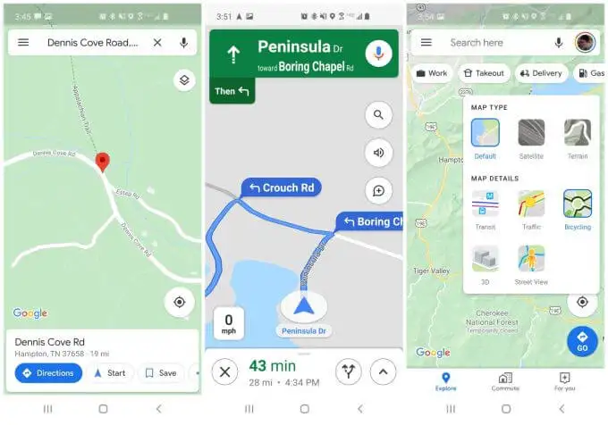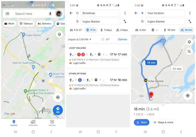 启用 Google Maps 中的自行车图层可以使此导航模式下的方向更加清晰。