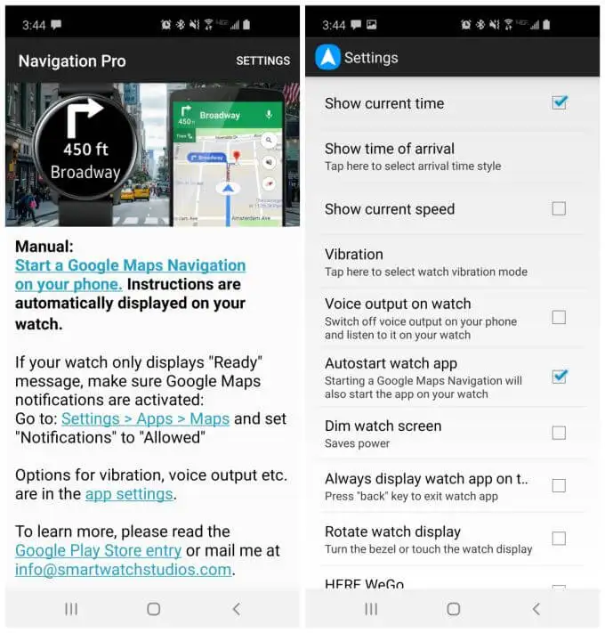 在手机和智能手表上设置 Navigation Pro 应用程序后,一切都会无缝运行。 您只需在手机上的 Google 地图应用程序中输入您的路线,一旦您开始导航,它就会自动在您的智能手表上启动导航应用程序。