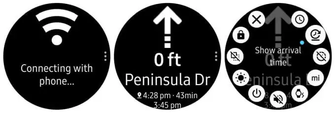 确保启用蓝牙并将手机与手表配对。 完成后,导航屏幕将启动,向您显示下一个即将到来的转弯及其距离。