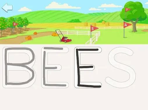 孩子學會追踪由紅色箭頭引導的字符和顯示追踪方向的目標,以及告訴他們下一步該做什麼的聲音提示。